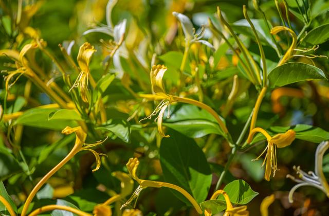 二、多浇水 金银花在夏季生长旺盛,需要充足的水分。每天可以给金银花浇一次水,同时也可以用喷壶喷水,保持植株湿润。但是要注意避免水淋到植株中心,以免引起病害。 三、修剪 夏季也是金银花的修剪期,可以将过长的枝条剪短,促使枝条发芽,增加花量。另外,要及时剪掉病枝和枯枝,保持植株健康。