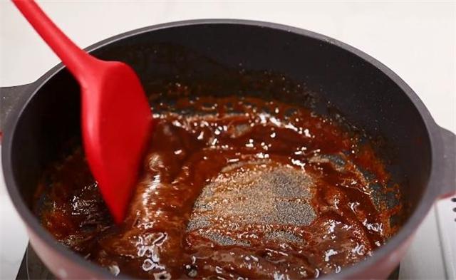 7.下面我们来熬糖稀,100g的清水,50g红糖,再放50g白糖,这里我们就尽量的不要动它,开大火先把糖熬到融化的状态,随着锅里面的温度加热,糖份里面的水会慢慢的蒸发。