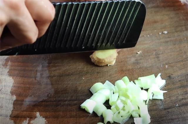 5.准备一小截葱段,切成葱花,再切几片生姜片,切碎备用。