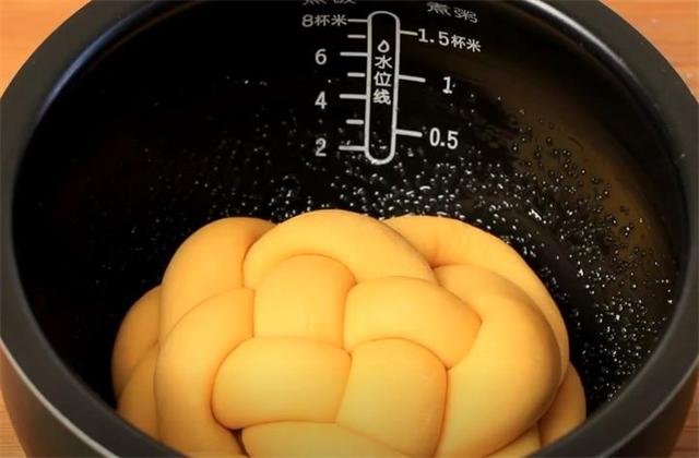 9.电饭锅刷油后撒点白糖,把面胚放进去,盖上湿布再醒20分钟。