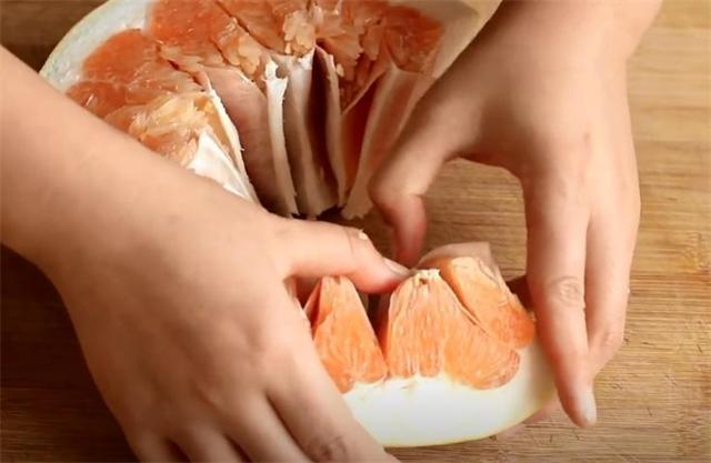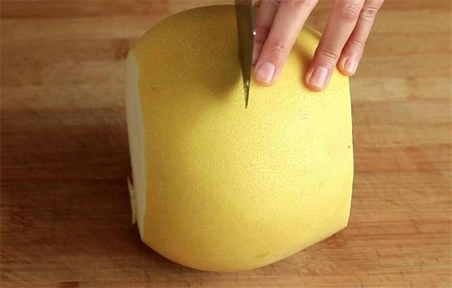 3.沿着柚子肉的生长纹理切一刀。