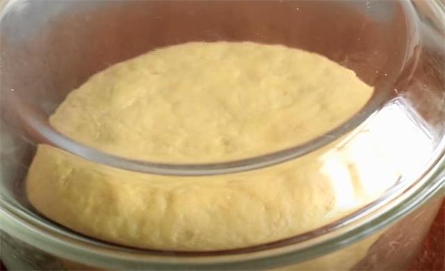 1.碗里加1斤面粉,再准备一个小碗,50g纯牛奶里加5g酵母粉化开,倒在面粉碗里,再加入50g白砂糖,30g熟食用油,搅匀后揉成面团,盖上盖子醒发至两倍大小。