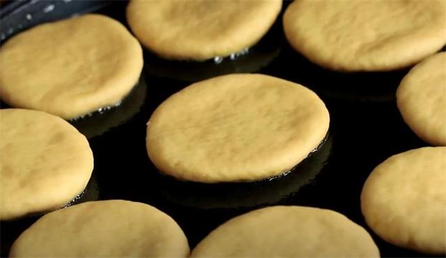 8.电饼铛刷油,放入小饼,煎熟后出锅,美味即成。