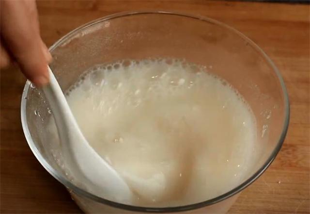 7.另外准备一个碗加入一勺面粉,再加一勺白糖和300毫升的水,搅拌到没有干面粉后备用。