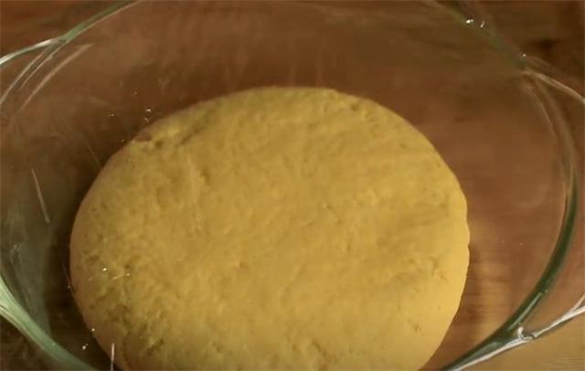 1.我们先在碗里加入150g的玉米面,锅里加250毫升的纯牛奶煮沸,把热牛奶加入到玉米面里,搅拌成没有干玉米面的糊状,加5g酵母粉和一勺白糖,搅匀化开后加350g的面粉,再加入30毫升的熟油,搅拌成面絮状后揉成面团,盖上保鲜膜醒发至两倍大。