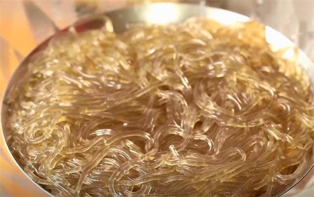 5.锅中水开后下入粉条,粉条煮三分钟左右,大概八成熟后捞出,然后过下凉水,防止坨在一起。