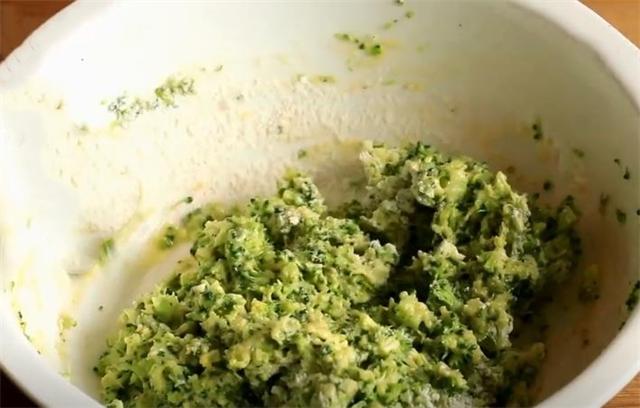 3.西兰花里加点食盐,再加点白胡椒粉,搅匀后加一勺面粉和适量清水,然后搅拌成这样没有干面粉的粘稠状。