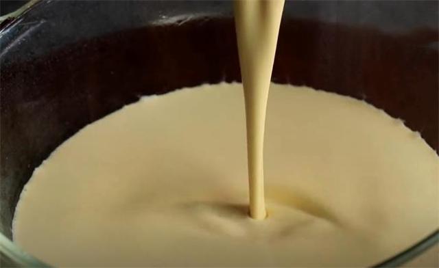 2.加250毫升纯牛奶搅匀,放入榨汁机里打成米浆。