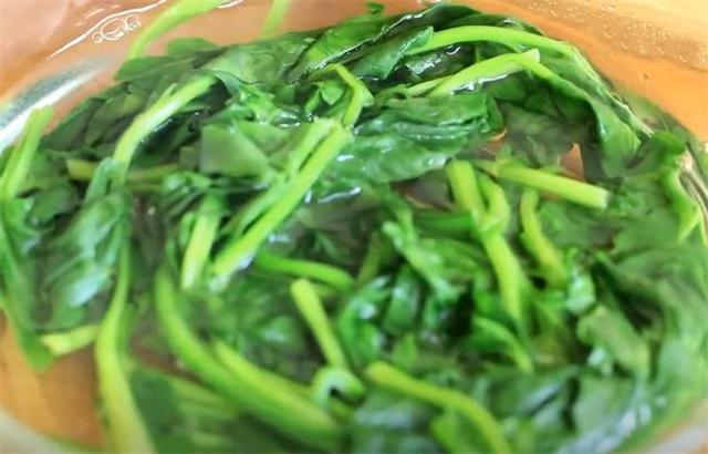 1.准备一把菠菜洗净,水开后把菠菜下锅焯水,焯水15秒就可以了,然后捞出过下凉水。