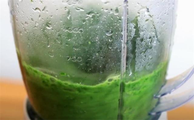 2.菠菜切下后放进榨汁机,再加点凉水后榨成汁。