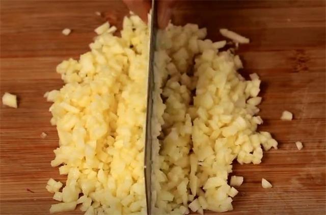 6.准备一个洗净的苹果去皮,切片后切成细条,再切成碎末。