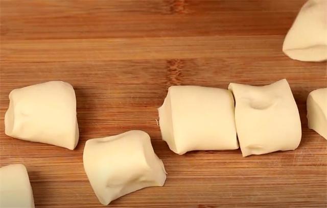4.接着再揉下排排气,揉成长条状后切分成小剂子。