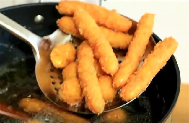 5.锅中加入稍微多一点的油,油热以后下锅炸,炸至金黄熟透出锅。