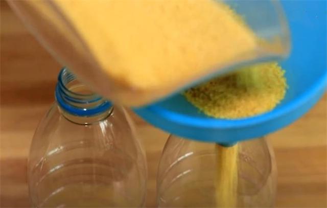1.小米装入两个矿泉水瓶中,家里没有瓶子的也可以省略这一步骤。(www.Ws46.com)