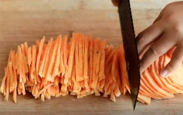 1.先把红薯皮去掉,切成薄片,然后再切成细丝。