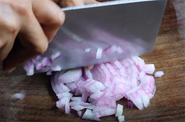 4.切半个洋葱,把洋葱切成丝,然后全部切成小丁,再准备点香菜,切成小段备用。