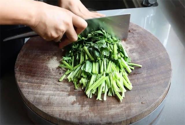1.先准备一把菠菜,然后择洗干净,用刀把菠菜切成段。