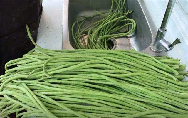 1.我们这边也把这种长豆角叫做豇豆角,然后把这些豆角全部清洗干净,顺便把里面不好的豆角挑出来,豆角洗干净后,直接挂在阳台上晾干。