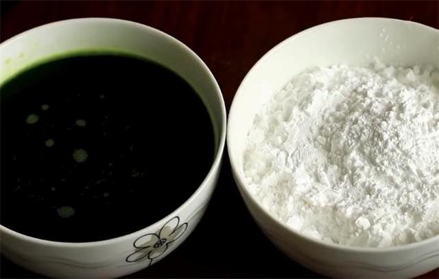 3.再准备一个碗加入豌豆淀粉,加到两碗高度一样即可。