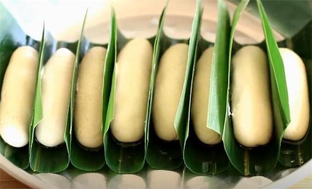 5.粽叶上刷层食用油后放上去,锅里水烧开后上锅蒸10分钟。