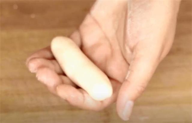 4.然后把口收紧,揉成长条状。