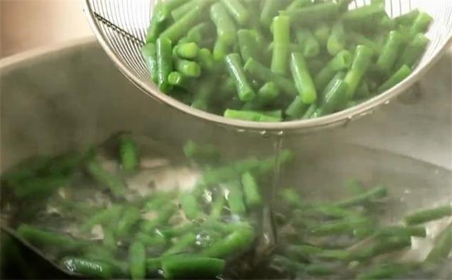 4.把豆角下锅煮熟,煮熟后捞出。