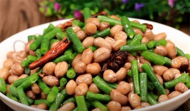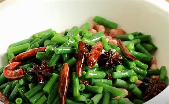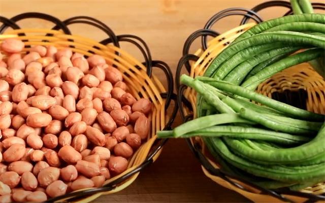 准备食材: 豆角、花生米、盐、八角、香叶、桂皮、花椒、味精、红辣椒、食用油 具体做法: