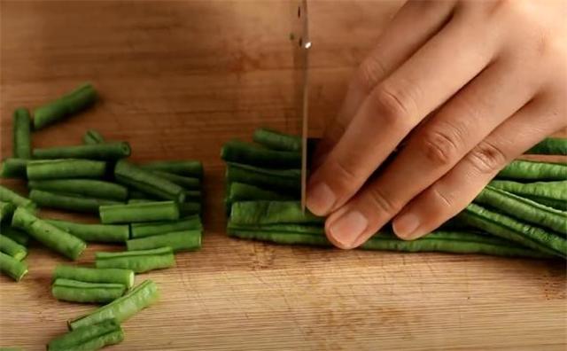1.准备一把豆角和一盘花生米,先把豆角切成小段。