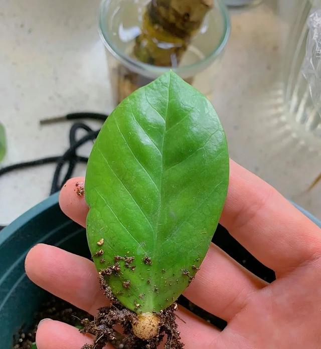 第四种,金钱树 像我家里也养了一盆金钱树,特别神奇,修剪下来的叶片,插到旁边的土壤里,竟然逐渐长出了毛细根,就像如图这样,后来才知道,金钱树用叶片也能繁殖。只要是健康的叶子,伤口晾干之后,放到透气性好的营养土中,很快就能生根发芽。