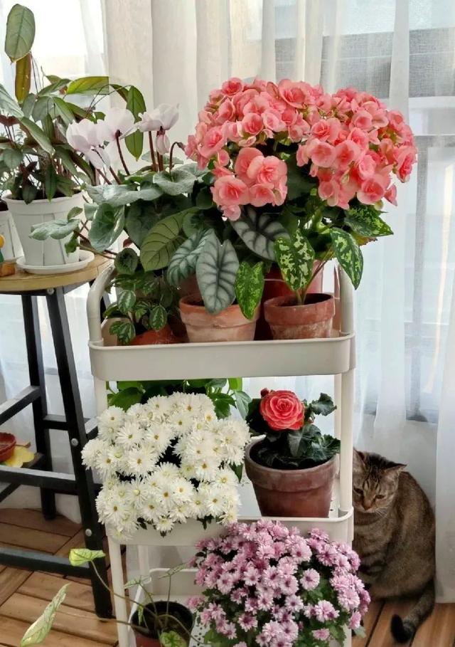 丽格秋海棠是非常著名的观赏盆栽,它的花色有粉色橘黄色,白色,黄色,红色等等,色彩丰富,缤纷绚丽,花枝招展,外形不是很高大,开花量却很惊人,往往多的不见叶,可以点缀于桌面,给环境赋予更多色彩。 它适合生长在20到25度的环境中,不耐寒冷,但也不耐高温,喜欢湿润,不耐干旱,生长温度至少保证在16度以上,平时也要多放在光照充足的环境中。