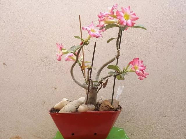 这么一个小盆栽,只需要一点点的泥土就可以了,根本不需要担心积水,腐烂的问题。 沙漠玫瑰只需要施肥,就能长得很好,至于开花,那就要用到磷、钾肥,但用量必须要控制好。在开花的时候,每10天喷一次花多多2号。