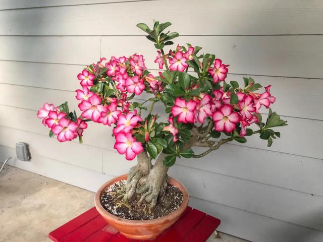 3、沙漠玫瑰 沙漠玫瑰是一个很好的家庭植物,我养过很多盆,但是没有一盆可以过冬,虽然不是一个很容易养好的植物,但是我很喜欢。 沙漠玫瑰的品种很多,花朵鲜艳,开花时间很长,只要照料得当,四季皆可观赏,因其体积巨大,且为单花,所以很受欢迎。 要养好它,首先要将它放在一个较小的盆子里,这样才能使它看起来更漂亮。