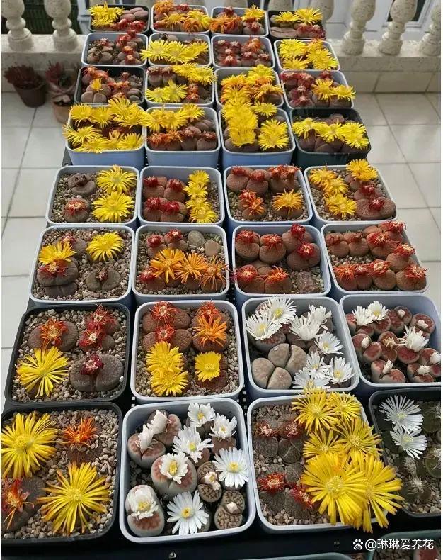 生石花淋雨就烂,不要露养,夏天少浇水,避免化水腐烂! 生石花属于番杏科植物中的一种,在番杏科植物中,生石花算得上是最火爆的,也是最受欢迎的,在我国的市场上火爆了能有近10年的时间了,也有很多人去买它,刚开始在市场上兴起的时候,价格还是非常昂贵的,平均一棵的价格大概在5~10元之间,现在的价格10块钱能买到一大盆。