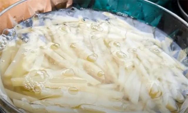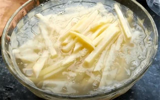1.土豆削皮,切条,放清水里浸泡清洗。