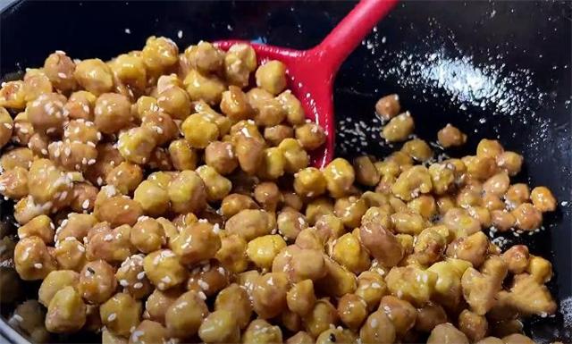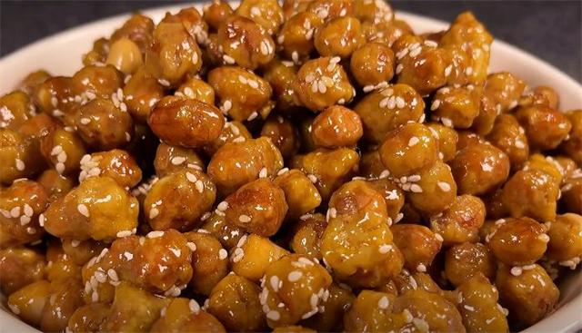 准备食材: 花生米、清水、盐、五香粉、淀粉、食用油、白糖、白芝麻 具体做法: