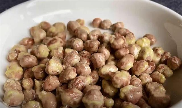 6.过滤好的花生米先放进一个干燥的盘子里面,全部过滤好以后先放一边,等一会儿再用它。