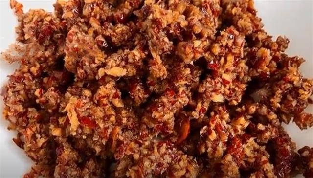 4.现在我们的红枣就全部处理好了,把它倒进料理机里面,把红枣进行破碎,搅的时间不用太长,搅碎以后把它倒进大碗里面,搅成像这样带颗粒状口感会更好。