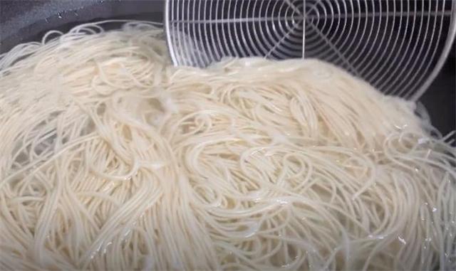 2.再把它放进凉开水里面过一遍,过凉水的面会更加的劲道,过凉水以后把它捞出来放进大碗里面。