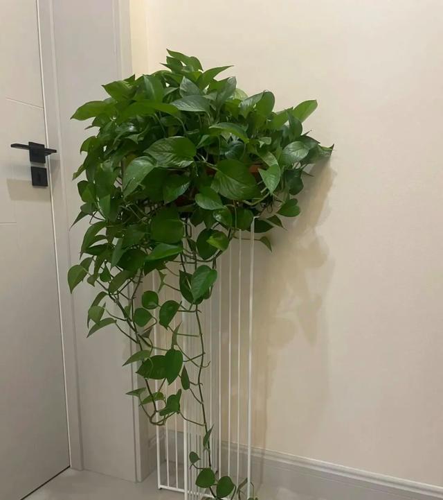 绿萝 绿萝是最简单的观赏花卉,叶片四季碧绿,泛着光泽,有很多品种,培养方式有很多,比如水培,比如土培,也可以放在电视旁,做成电视背景墙,或者悬挂起来不占空间,绿色的藤蔓自由下垂,形成一片小森林。但是养绿萝,如果是用有孔的花盆土壤培育,每隔一两天就要浇一次水。如果是自吸花盆,大概三四天天补充一次水分。如果是水培的话,要注意更换,并且做好清洗,避免滋生绿苔。