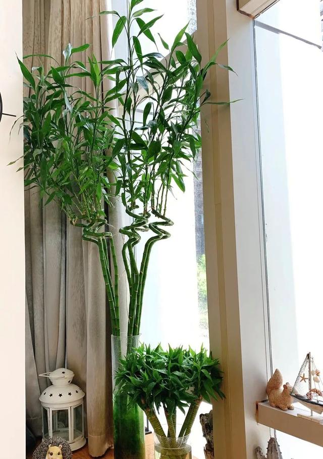 富贵竹 大家养富贵竹,都是扔在水瓶里,就能不断长根,不断长叶,越来越茂盛,代表富贵吉祥,好运常在,可以点缀桌面或者台面,翠绿盎然,带来一片生机。富贵竹缺水的情况下活不了,如果是水培的话,每次换水的时候,要注意清洗,不然非常容易污染,甚至导致根系腐烂,必要的时候可以使用甲硝唑。