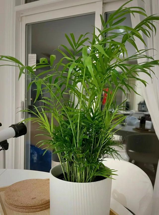 袖珍椰子 袖珍椰子被人们认为是小型的椰子树,它的叶片潇洒飘逸,造型优美,可用于点缀客厅一角,或者是书房,非常清新,别具一格。还可以改变空气质量,是人类健康的好帮手。袖珍椰子喜欢生长在湿润的土壤里,缺水长不好,夏天水分蒸发快,大概每个星期就要补充水分2到3次,而且要浇透。
