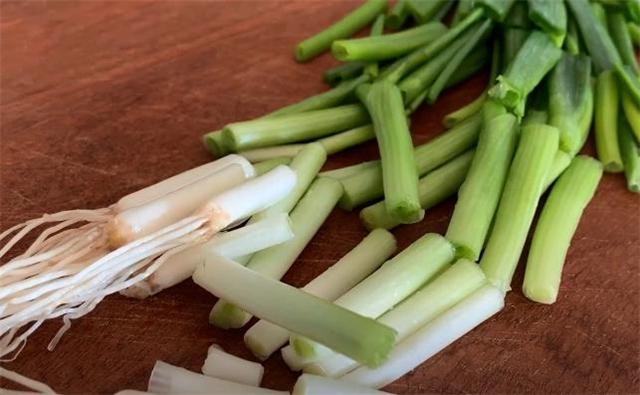 3.下面我们准备一把小葱,把它切成长一点的段,切好以后放进碗里面备用。