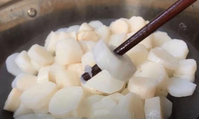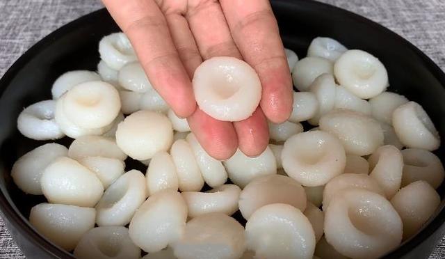 7.然后倒进盘子里面,这样做的山药小窝窝吃法有很多,可以炖汤,也可以炒着吃,还可以红烧,今天就给大家做一个红烧的。
