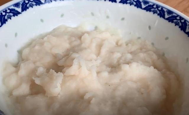 3.然后把它取出来,倒进一个大碗里面,然后用擀面杖把它捣碎,捣成像这样细腻无颗粒的状态就可以了。