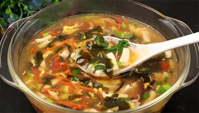 6.倒到盆里面,这样一道非常营养又美味的裙带菜汤就做好了,开胃又解馋,喜欢就自己在家试试吧。 |