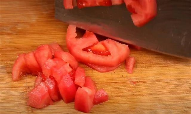 5.起锅烧油,油热以后下入西红柿,西红柿炒出汁后加入清水,再放入刚切好的配菜,大火煮开之后开始调味,加入适量的食盐,白胡椒粉和生抽,再勾芡一点水淀粉,煮熟之后再加点香醋,淋点小磨香油,最后撒上一点葱花和香菜,美味即成。