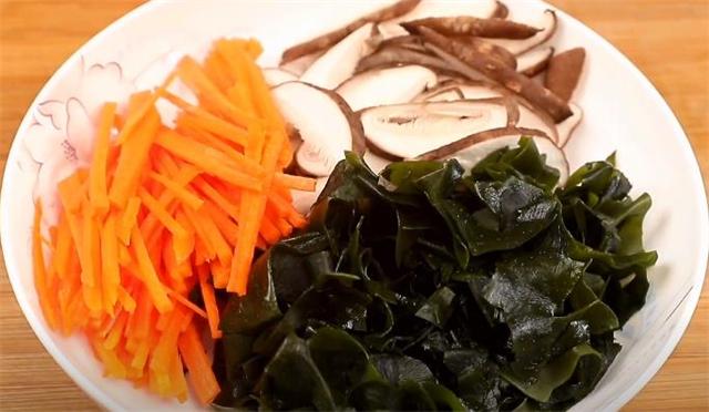 1.先准备一点裙带菜冷水泡发,一点就可以泡发很多。