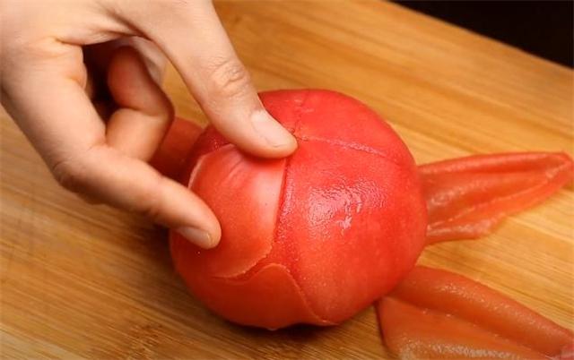 1.准备一个西红柿给它切十字花刀,然后用开水给它烫一下,这样容易去皮。