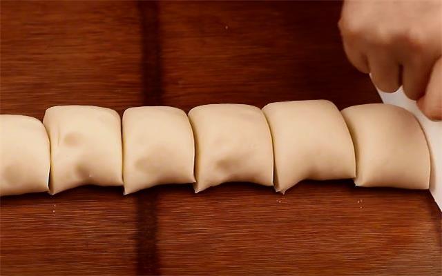 7.接着包起来继续揉,把面团揉光滑以后再揉搓成长条,然后切成等份的小剂子。