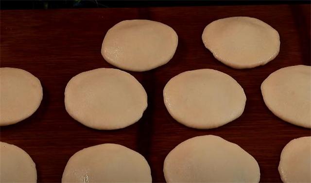 9.包好之后用手再按一按,全部做成这样的圆饼状。